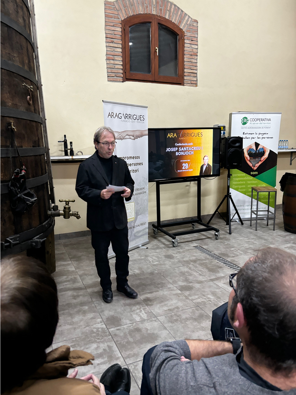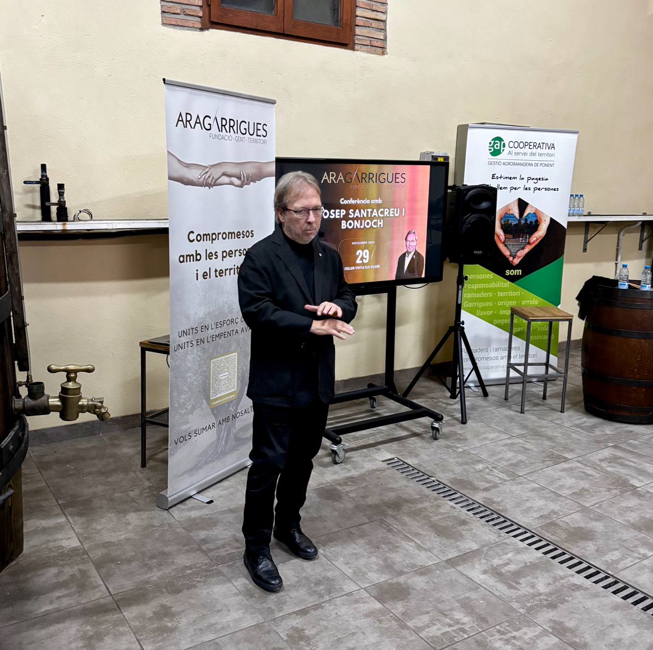 Divendres passat, el Celler Vinya els Vilars d’Arbeca va acollir una interessant conferència, organitzada per la Fundació Ara Garrigues. La xarrada va estar liderada per Josep Santacreu Bonjoch, metge, filàntrop i actual president de la Cambra de Comerç de Barcelona, força reconegut per la seva trajectòria en l’àmbit empresarial i la sostenibilitat.
